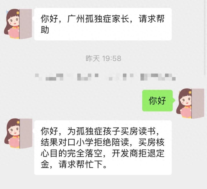 “为孤独症孩子买房读书,结果对口小学拒绝陪读,买房核心目的完全落空,开发商拒退定金。”
